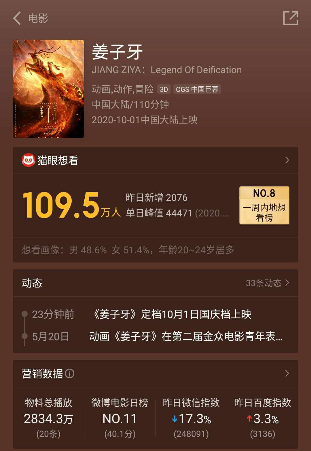3、点击《姜子牙》海报,进入影片详情页。