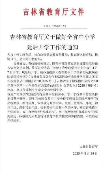 二、吉林最新开学时间公布