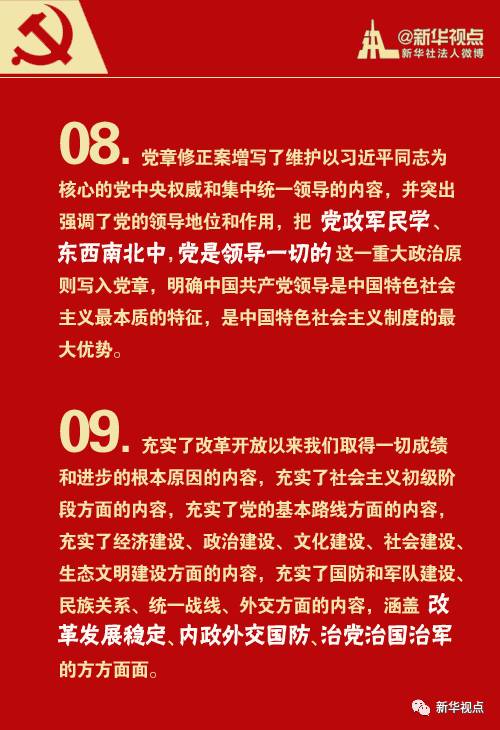 最新党章在保持总体框架不变的基础上,对部分内容进行了修改和完善,以下几个方面值得我们重点关注: