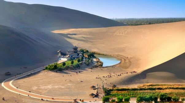 敦煌是丝绸之路上的璀璨明珠,拥有世界闻名的莫高窟、鸣沙山和月牙泉等景点,莫高窟是世界文化遗产,内有丰富的佛教艺术珍品;鸣沙山和月牙泉则是沙漠中的绿洲,风景独特,令人陶醉。