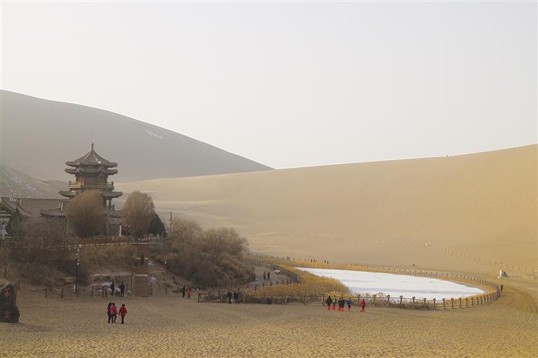 第三天:探访鸣沙山和月牙泉,沙山与绿洲相映成趣,傍晚时分的日落景象尤为壮观。