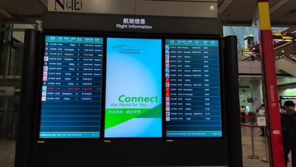 白云机场的显示屏是旅客获取实时航班动态的重要渠道之一,在机场的各个区域,都设有显示屏,显示航班的最新动态,旅客可以通过显示屏了解航班的起飞、到达、登机口等信息,随时掌握航班的最新情况。