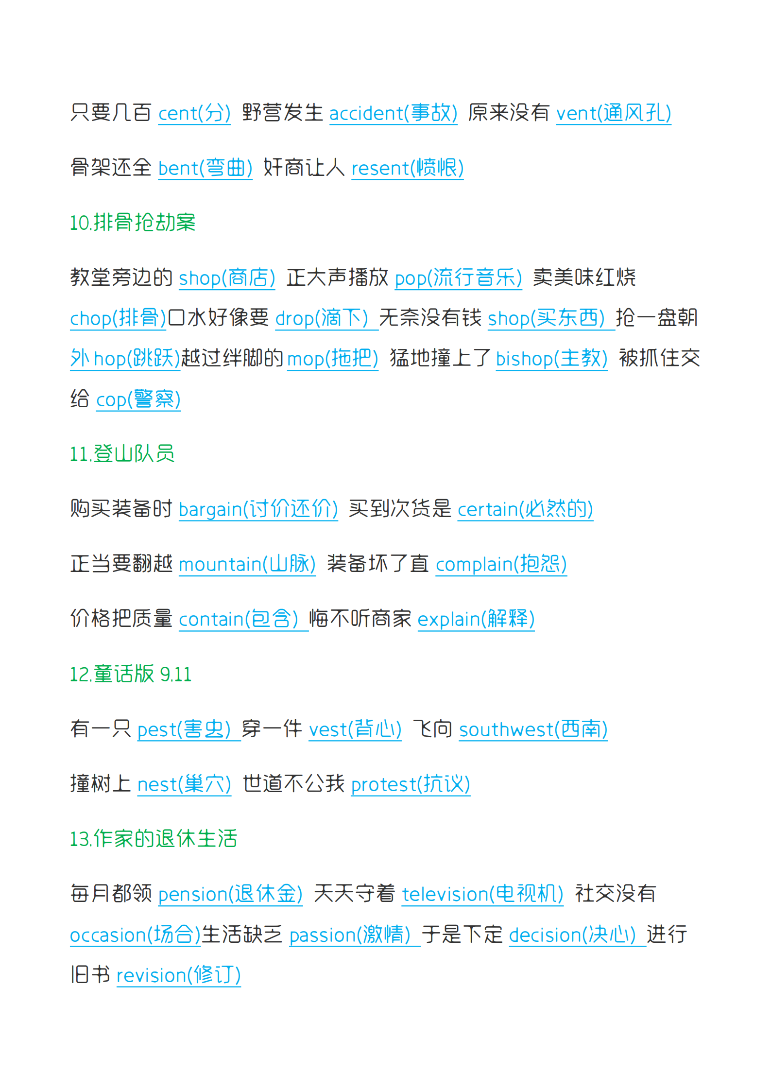 联想记忆法是一种将新词汇与已知的事物、场景或概念相联系的记忆方法。以下是一些实用的口诀: