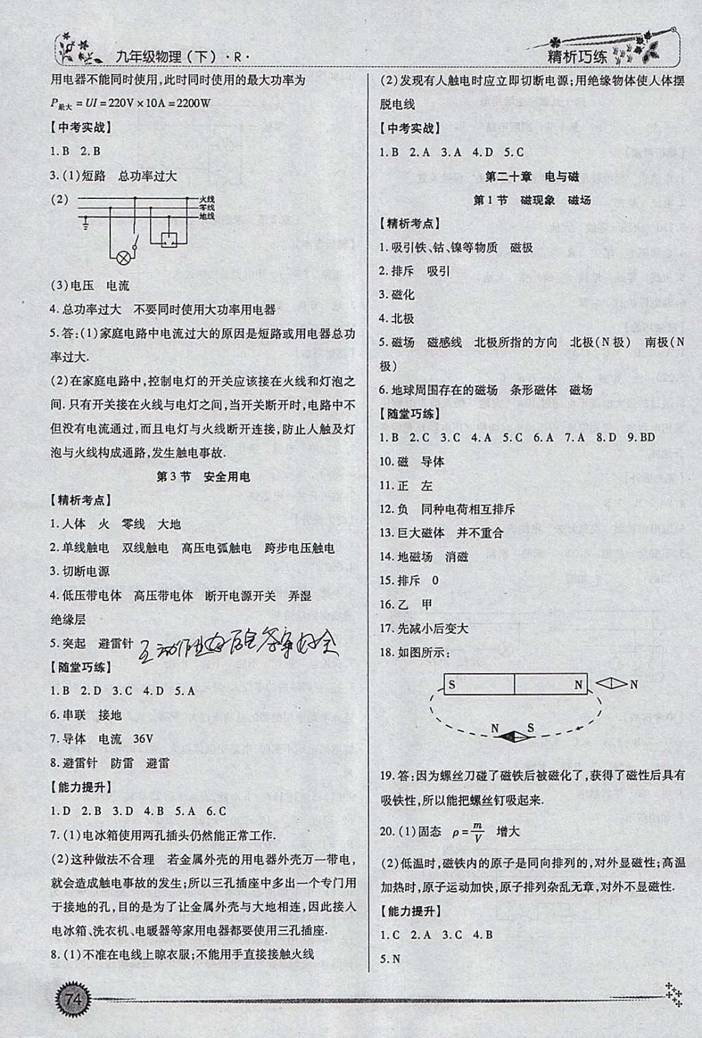 以下为九年级物理高效复习模卷的部分内容: