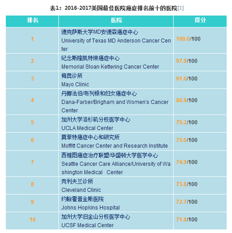 全球前一百家医院的概述