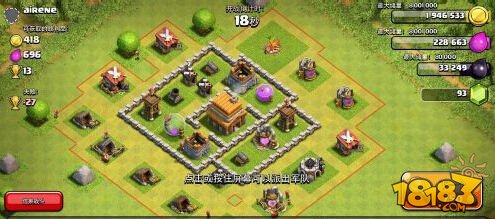 在建筑基地的布局上,玩家需要考虑到防御和进攻两个方面,针对四本阶段,推荐采用分散式建筑布局,将资源建筑、防御设施和兵营分散放置,以提高防御效果,注意将重要建筑如部落城堡、金矿等放置在靠近中心的位置,便于防守。