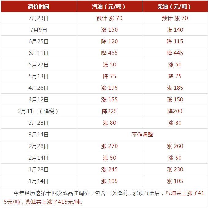江苏油价调整情况