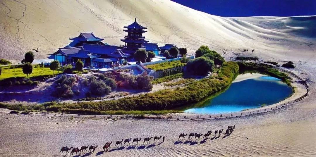 鸣沙山和月牙泉是敦煌的又一著名景点,您可以欣赏到沙漠与绿洲的交融,十月,正是沙漠气候宜人的季节,可以骑骆驼穿越沙漠,感受大漠风光。