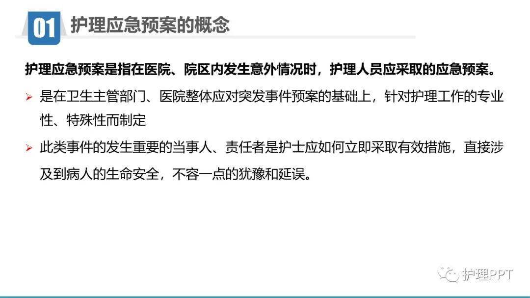 护理突发事件是指在医疗护理过程中突然发生的、不可预测的、可能对患者的生命安全和身体健康造成威胁的紧急事件,根据其性质和影响力,护理突发事件可分为自然灾害类、疾病疫情类、技术风险类、患者安全类等多个类别。