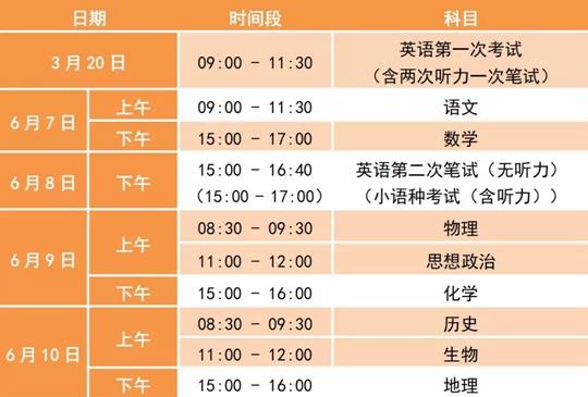 新学考时间的安排