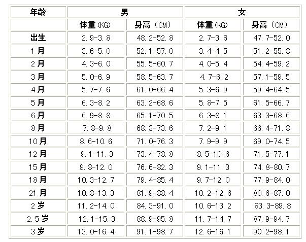 百度一下宝宝身高体重表