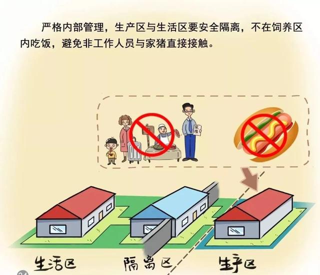 1、生物安全措施:加强猪场的生物安全管理,建立严格的进出管理制度,确保所有人员、车辆和物资在进入猪场前进行消毒和检查,加强饲料、饮水管理,确保安全。