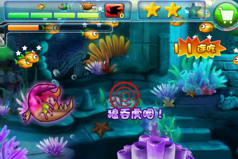 2、进化系统:通过吞噬小鱼获取经验值,玩家将不断进化自身,解锁新的技能和属性,每一次进化都带来全新的游戏体验,激发玩家的成就感。