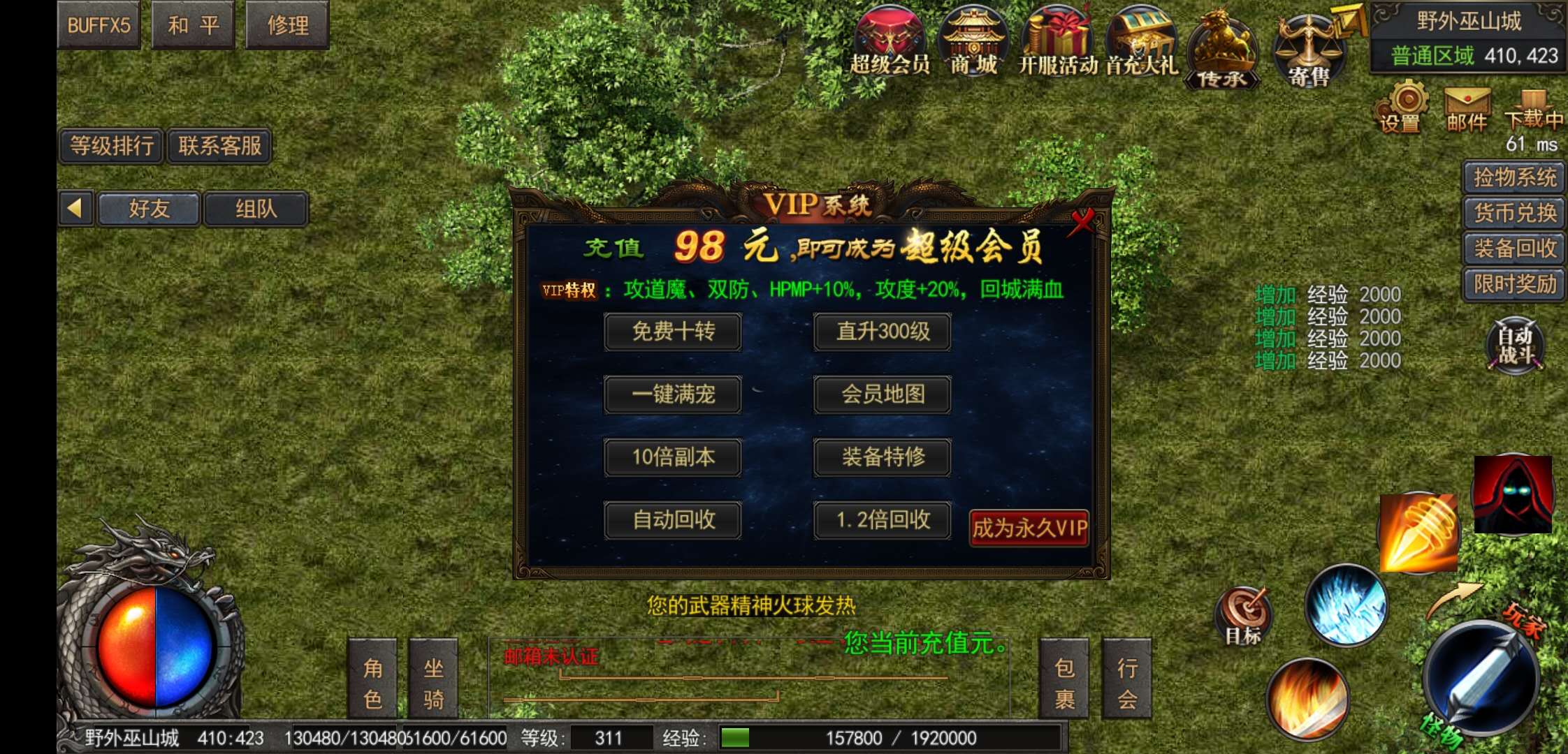 1、独特的游戏设定:单职业传奇独特的游戏设定,让玩家在游戏中能够体验到不同于其他游戏的乐趣,游戏中的每一个职业都有自己独特的技能和特点,玩家可以根据自己的喜好选择。