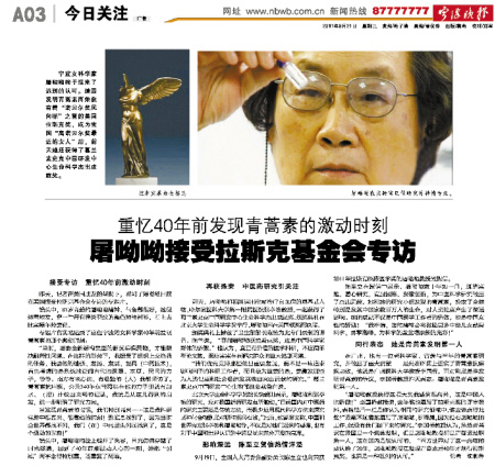转载请注明来自醉美玉溪,本文标题:《屠呦呦最新成果揭秘,11月5日神奇时刻的发现》